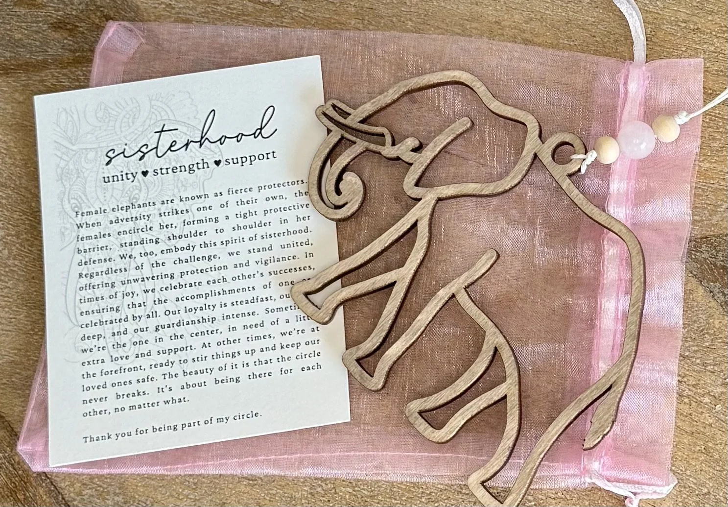 Meet the newest addition to our intentional gift offerings: a hand-cut wooden elephant made by a Breast Cancer survivor.